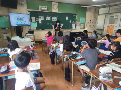 英語活動の時間は、C−NET(ネイティブ)の先生と一緒に学習しました。