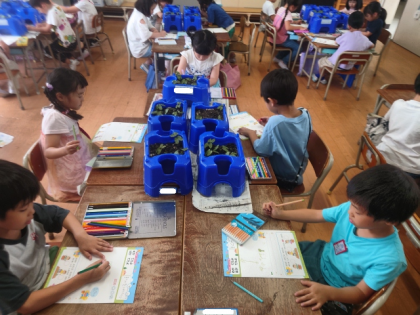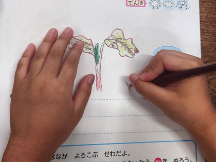 生活科の時間は、あさがおの観察をして、ワークシートにまとめました。