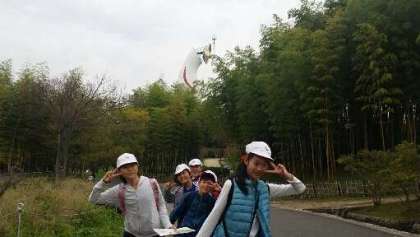 あっ、太陽の塔だ。オリエンテーリング中です。