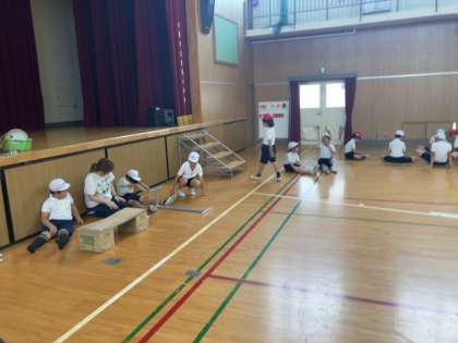 そばではグループになって、表現運動の練習に取り組んでいるようです。