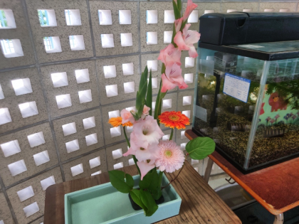 地域の方が玄関の生け花を活けていただいています。