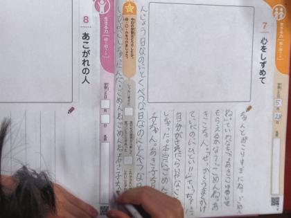 道徳の時間は、教材文「心をしずめて」の学習をしました。