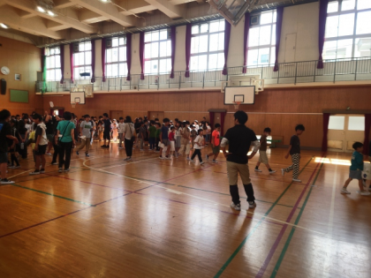 最後に、講堂に集合して、並び方の練習をしたり、運営委員会の人の話を聞いたりしました。