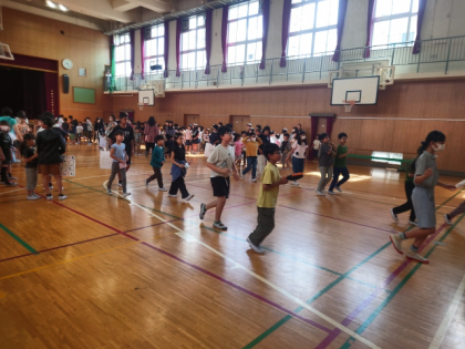 教室では、6年生のリーダーがいろいろなことをやさしく教えていたり、講堂までの移動のときは、6年生が1年生の手をつないで一緒に歩いたりしている姿が見られました。