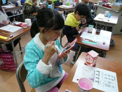 保健室の先生が、2学期も各学級ではみがき指導をおこなっています。みがき残しのないようにていねいに歯ブラシをしましょう。