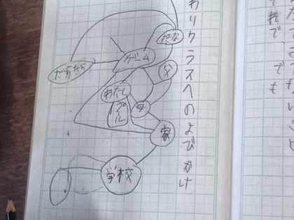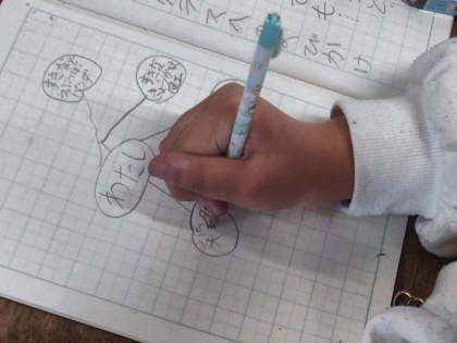 今日は、クラスの友達に自分のことをもっと知ってもらうために、自分の好きなことや得意なこと、苦手なことや直したいと思っていることなど、自分について考えたことをノートに書き出しました。