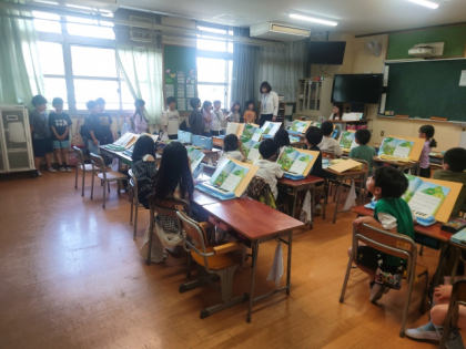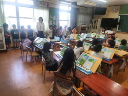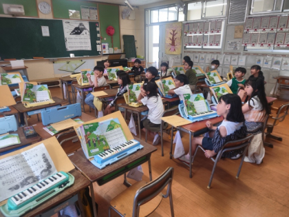 音楽科の時間は、「山びこ ごっこ」の歌を歌い、みんなで「子どもグループ