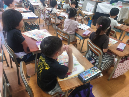 算数科の時間は、いろいろな形の箱を集めて「はこの かたち」「つつの かたち」「ぼおるの かたち」の仲間に分けました。
