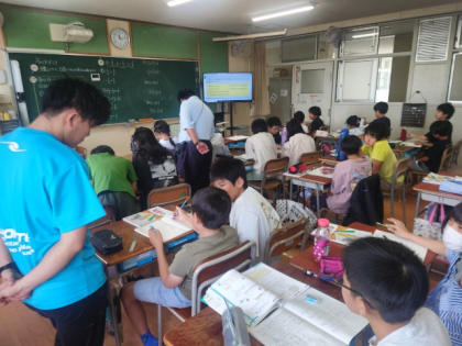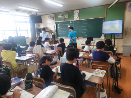 算数科の時間は、「〇×△=△×〇」「(〇+△)×□=〇×□+△×□」などの計算のきまりが、分数の計算の場合も成り立つのかを調べました。