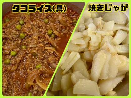 今日の献立は、タコライス・もずくのスープ・焼きじゃが・牛乳でした。