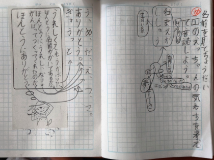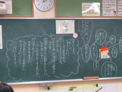 国語科の時間は、1場面で、ぼうしをもらったときのえっちゃんの気持ちを考えました。