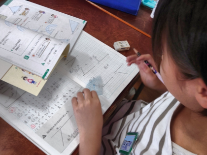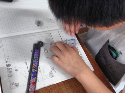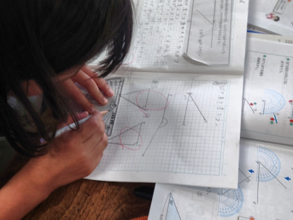 算数科の時間は、分度器を使って角を描く練習をしました。