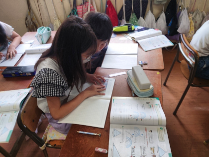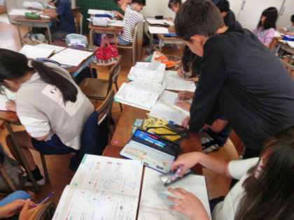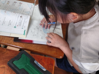 算数科の時間は、分度器を使って角を描く練習をしました。