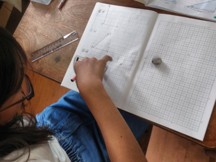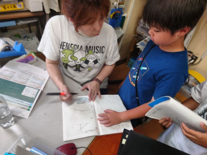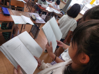 算数科の時間は、分度器を使って角を描く練習をしました。