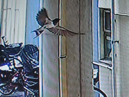 さて、先週から、職員室の防犯カメラの画像を見ていると、画面に鳥が横切るようになりました。