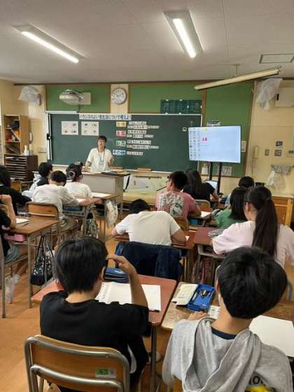 茨田東小学校の栄養教諭の先生をお招きし、「バランスのよい食生活について考えよう」をテーマに学習しました。
