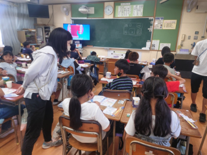 本校では、5年生の子どもたちが学習内容を収録したDVD教材を使って参加し、クイズや実習を通して、歯と口の健康について学びました。