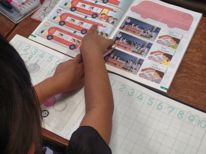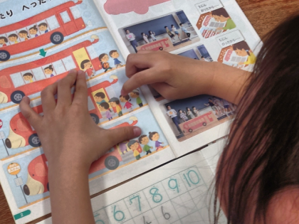 算数科の時間は、増えたり減ったりするバスのお客さんは何人なのか数えました。
