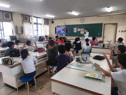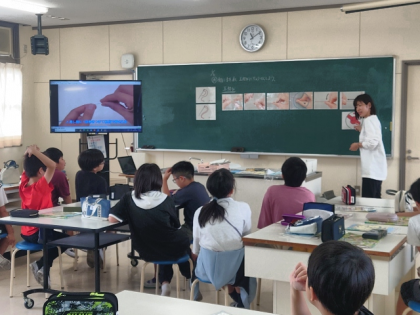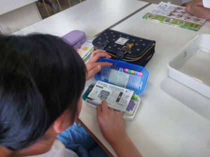 今日は、針の小さな穴に糸を通して、玉結びの練習をしました。