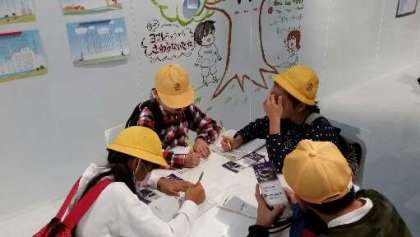 8回の大阪空襲にちなんだ8つの平和の鐘に願いをこめて。図書室にはたくさんの資料があります。