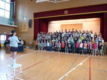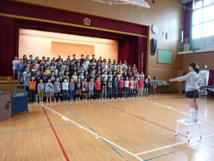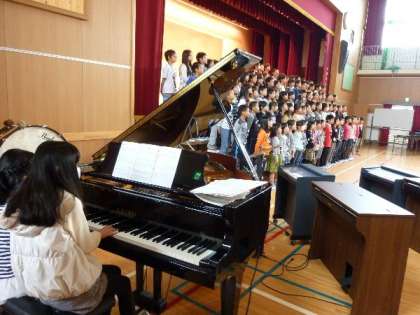 4・5年生の音楽発表会では4年生と5年生の合同の合唱もあります。今日は舞台練習をおこないました。お楽しみに!
