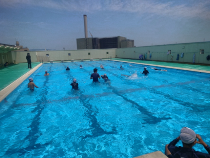 今日は、水慣れの後、けのびやバタ足などの練習をしました。