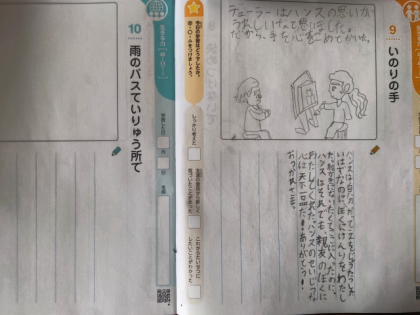 道徳の時間は、教材文「いのりの手」の学習をしました。