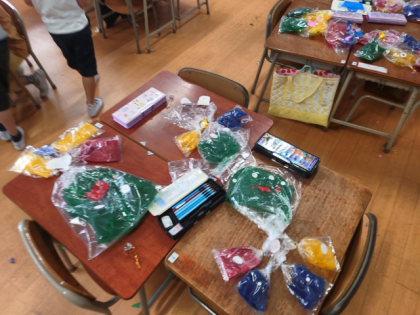 図工科の時間は、透明の袋や色シート、カラーモールなどを使って形を作っていきます。