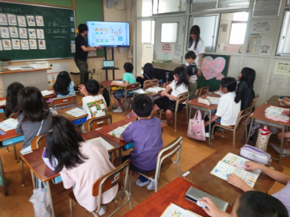 英語活動の時間は、C−NET(ネイティブ)の先生が教室に入り、学習をしました。