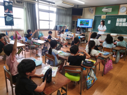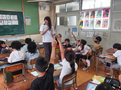 英語科の時間は、好きなスポーツは何かをみんなで考えながら、スポーツを表す英語の表現を学習しました。