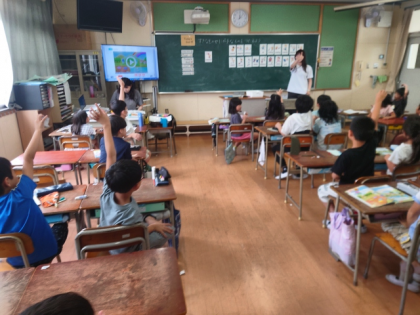 英語科の時間は、好きなスポーツは何かをみんなで考えながら、スポーツを表す英語の表現を学習しました。