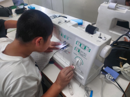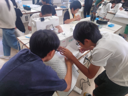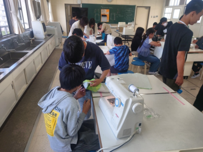 家庭科の時間は、ミシンを使ってナップザックをつくります。