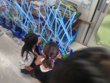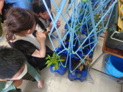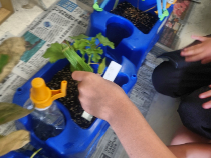 生活科の時間は、お店で売っている野菜と大きさ、色、形などを比べて、自分が育てている野菜が収穫できるかどうか考えました。