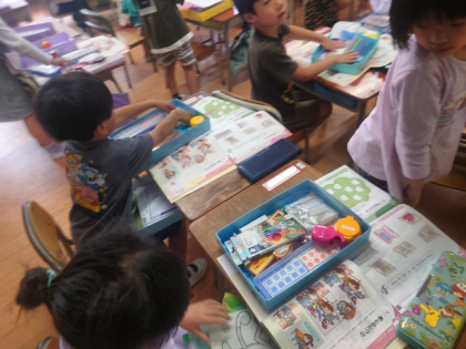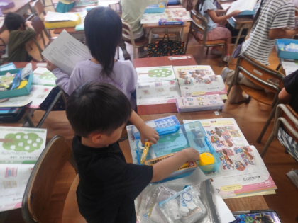 授業の終わりに、自分の持ち物やみんなで使うものなど、みんなできれいに片付けました。