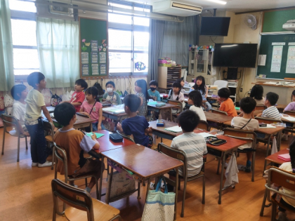 生活科の時間は、自分たちで育てている野菜について、「お野菜会議」を開きました。