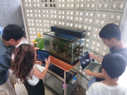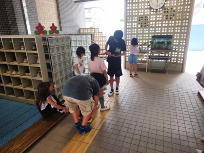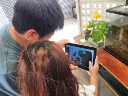 そして、1年生と6年生が一緒に中庭や学習園に行き、カメラモードにしていろいろな場所やもの、人を撮影して、また大喜びでした。