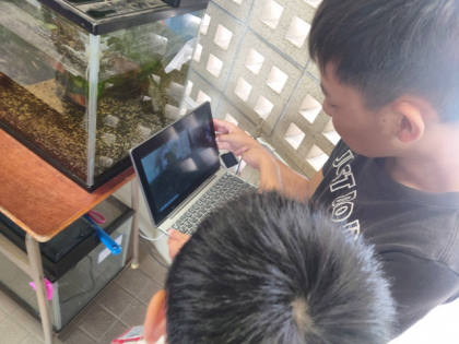 そして、1年生と6年生が一緒に中庭や学習園に行き、カメラモードにしていろいろな場所やもの、人を撮影して、また大喜びでした。