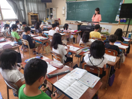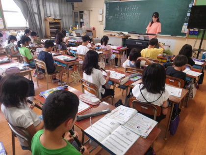 「ゆうやけ こやけ」「いちばんぼし みつけた」「あした てんきに なあれ」などのわらべうたを、シとラの音を使って練習しました。