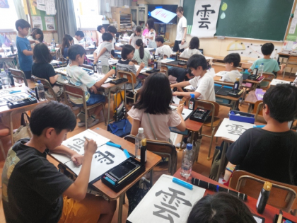 書写の時間は、毛筆で「雲」という字を練習しました。