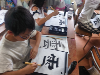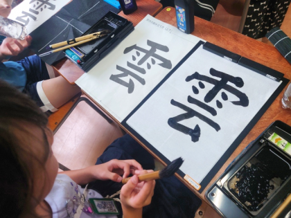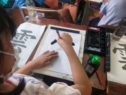 書写の時間は、毛筆で「雲」という字を練習しました。