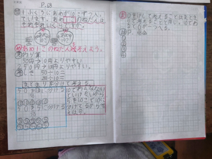 算数科の時間は、10倍、100倍した数や、10でわった数の学習をしています。