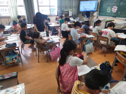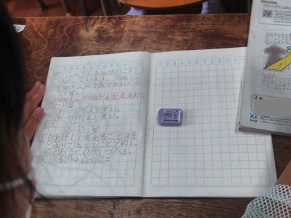 算数科の時間は、10倍、100倍した数や、10でわった数の学習をしています。
