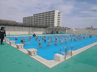 水慣れのあと、今日は平泳ぎの足の動きを練習しました。