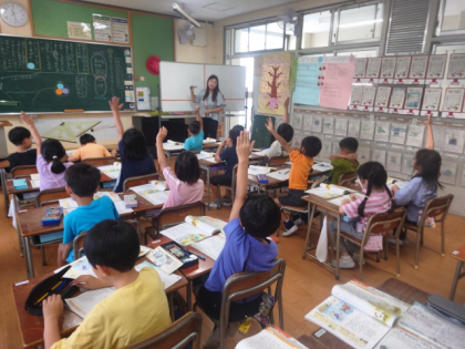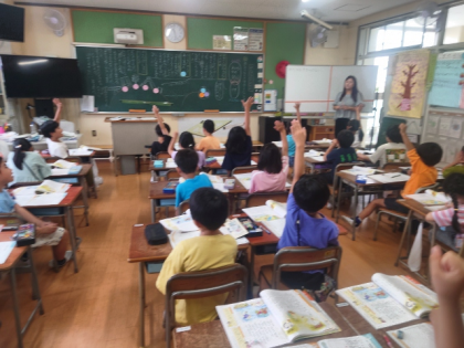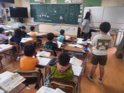 子どもたちは、かめさんがりすさんを背中に乗せて、池をわたっているときのみんなの気持ちを考えました。