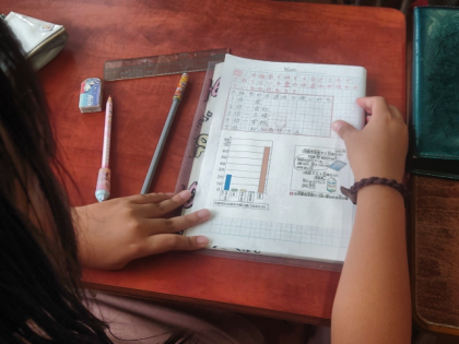 社会科の時間は、大阪市では、どんなところで、どれぐらいの水道水が使われているのか調べました。