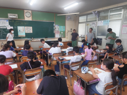 資料から大阪市民一人あたりの1日に使う水の量は394Lということがわかりましたが、実際に394本の牛乳パックが出てくると、その量に子どもたちは「こんなに使っているのか!」ととても驚いていました。