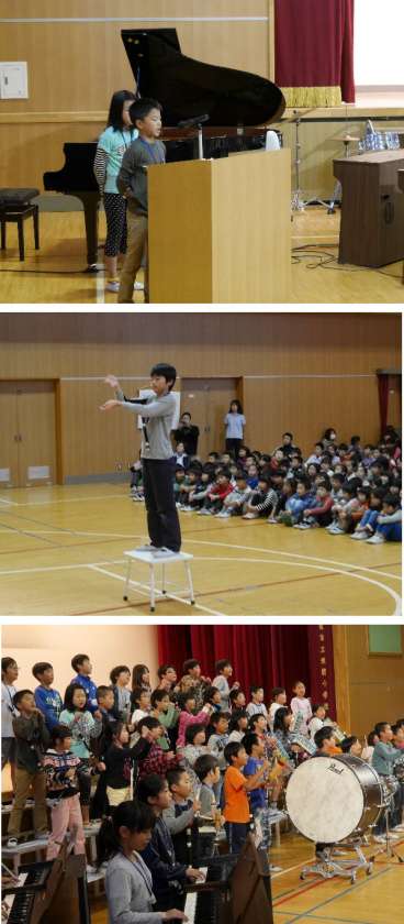 今日は明日の4・5年の音楽発表会のリハーサルです。リハーサルでは1年から6年の児童も鑑賞しました。明日の本番を楽しみにお待ちください。
