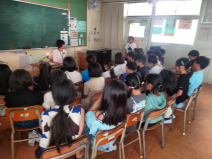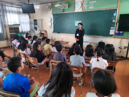 各教室に「鶴見おはなしサークルでんでんむし」の皆さんに来ていただいて、「おはなし会」を開きました。