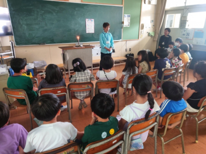 各教室に「鶴見おはなしサークルでんでんむし」の皆さんに来ていただいて、「おはなし会」を開きました。