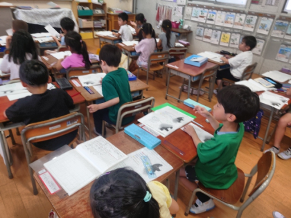 国語科の時間は、教科書の教材文「どうやって みを まもるのかな」の学習をしています。